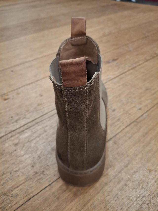 Dieser stilvolle Chelsea Boot von Schuhdesign Copenhagen vereint skandinavisches Design mit modernem Komfort. Gefertigt aus hochwertigem Veloursleder in einem eleganten Taupe-Ton überzeugt der Schuh durch seine klare Linienführung und zeitlose Ausstrahlung. Die seitlichen Stretcheinsätze ermöglichen ein müheloses An- und Ausziehen, während die markante, profilierte Plateausohle für einen modernen Look und angenehmen Tragekomfort sorgt. Vielseitig kombinierbar zu Jeans, Stoffhosen oder Kleidern ist dieser Boot ein stilvoller Begleiter für Alltag und Freizeit – lässig, urban und zeitlos zugleich.
